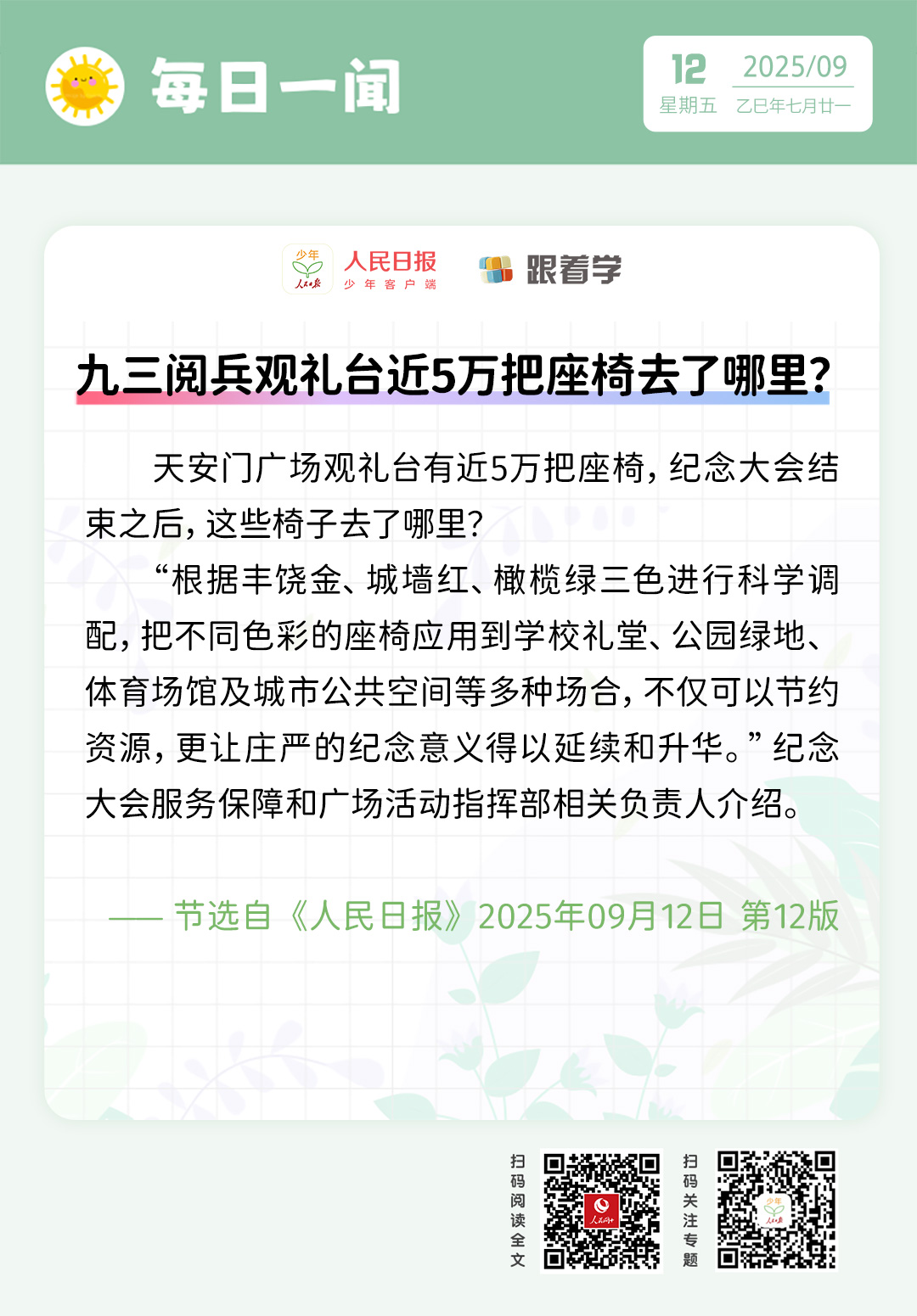 每日一闻丨九三阅兵观礼台近5万把座椅去了哪里?