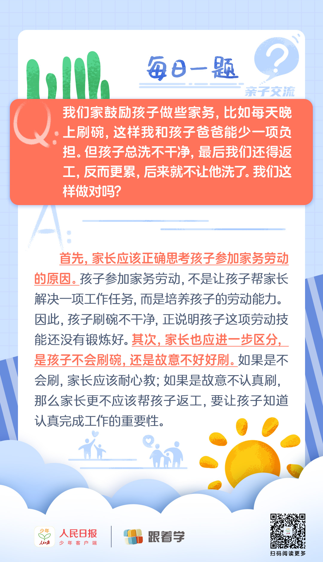 每日一题丨家长应该如何纠正孩子做家务时的错误?