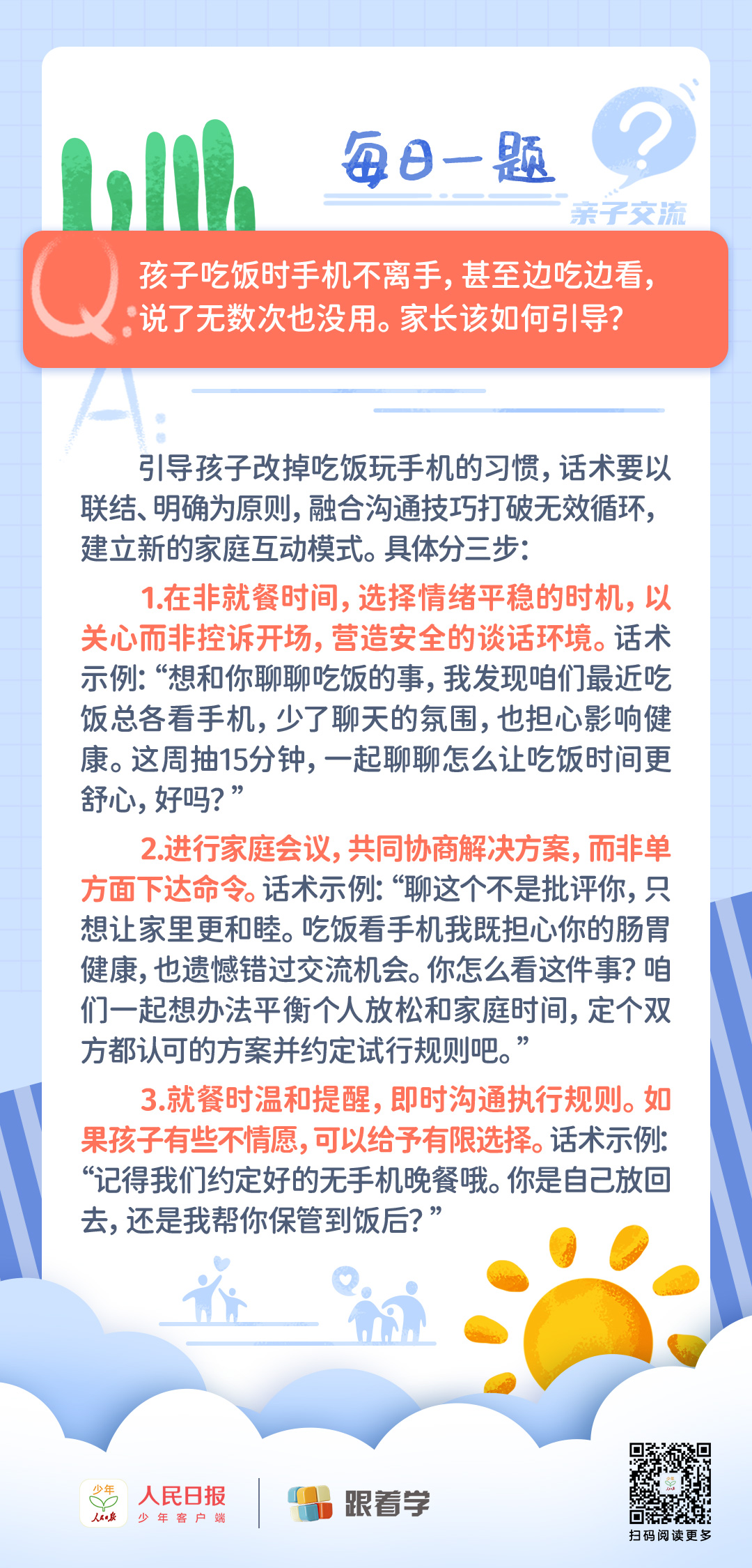 每日一题丨孩子吃饭玩手机屡教不改,该如何引导?