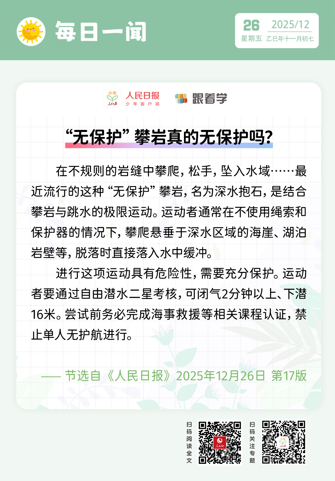 每日一闻丨“无保护”攀岩真的无保护吗?