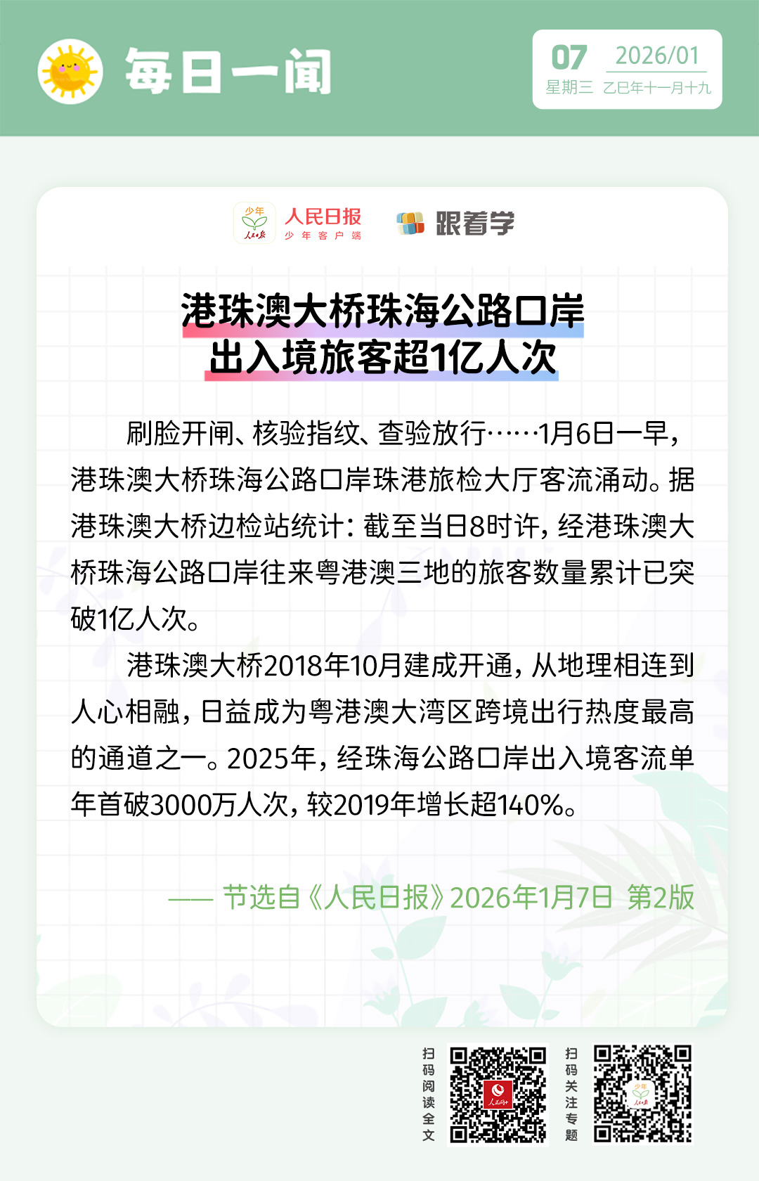 每日一闻丨港珠澳大桥珠海公路口岸出入境旅客超1亿人次