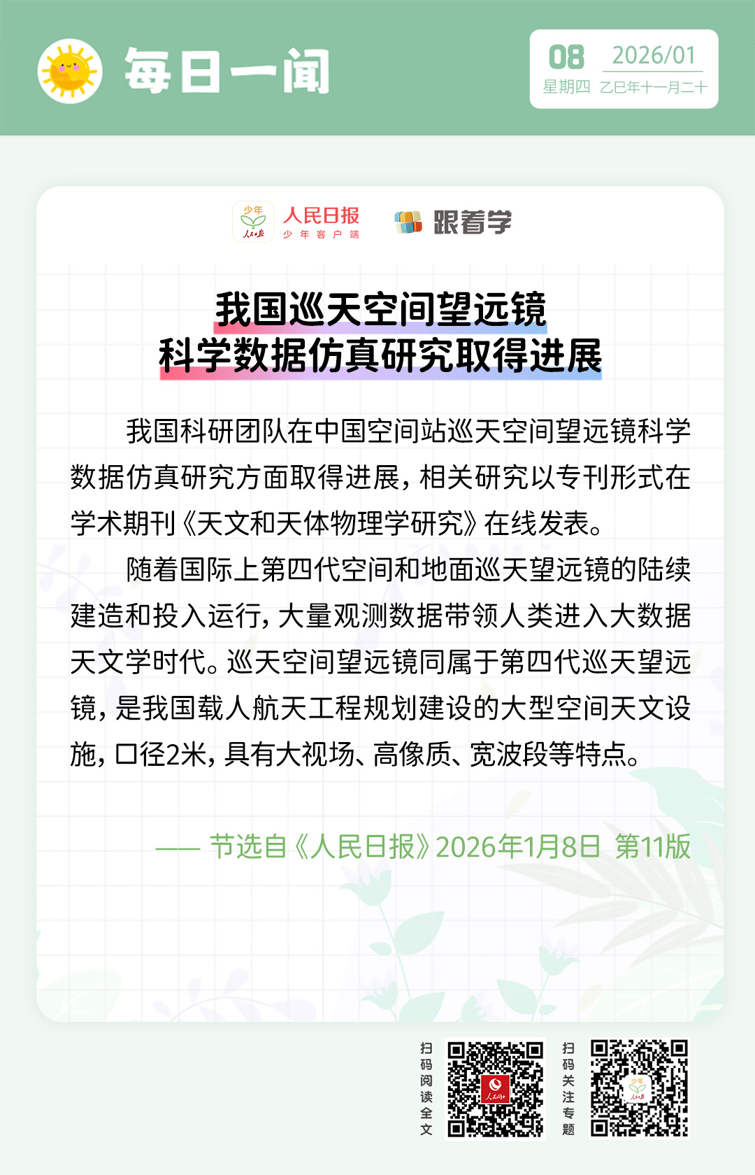 每日一闻丨我国巡天空间望远镜科学数据仿真研究取得进展