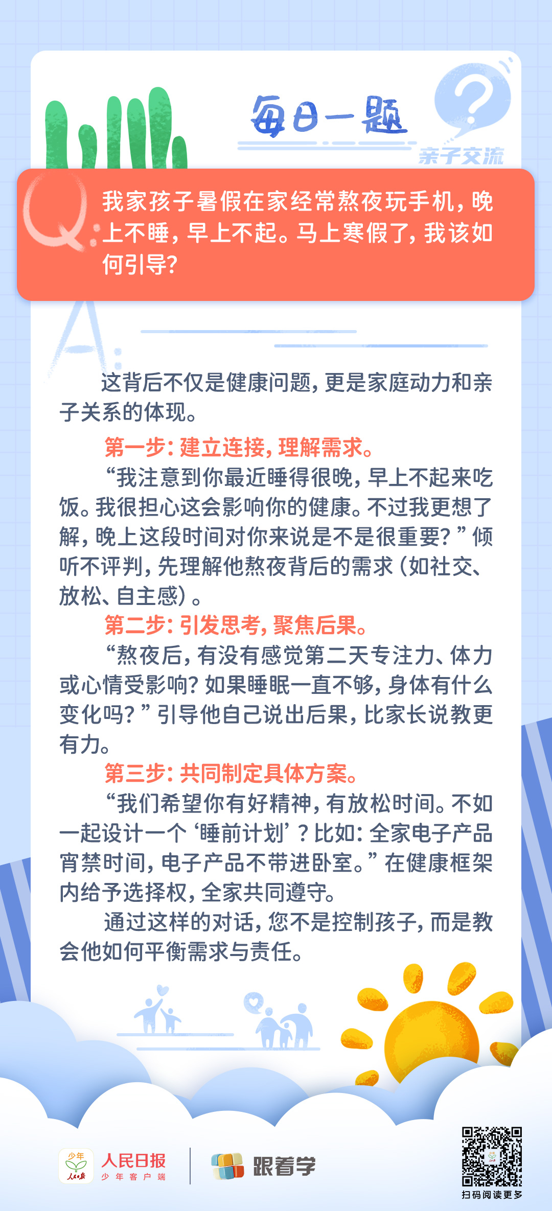 每日一题丨孩子假期在家,经常熬夜玩手机至凌晨,家长该如何引导?