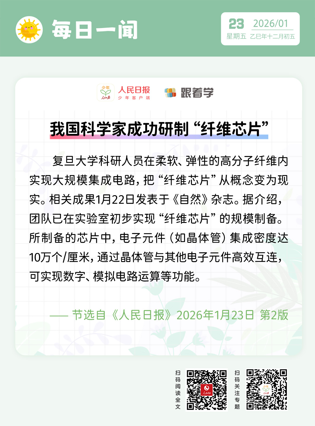 每日一闻丨我国科学家成功研制“纤维芯片”