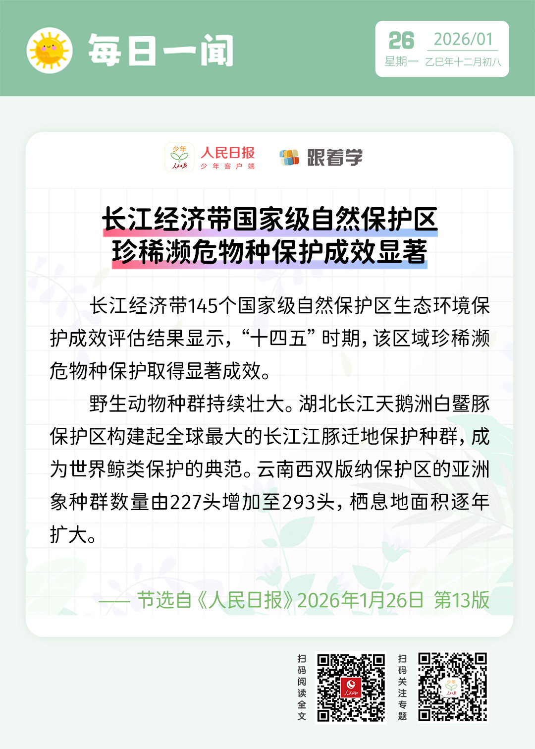 每日一闻丨长江经济带国家级自然保护区珍稀濒危物种保护成效显著