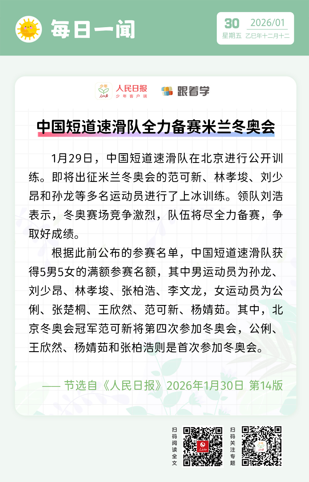 每日一闻丨中国短道速滑队全力备赛米兰冬奥会
