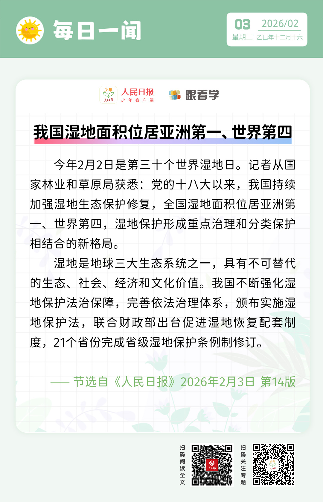 每日一闻丨我国湿地面积位居亚洲第一、世界第四