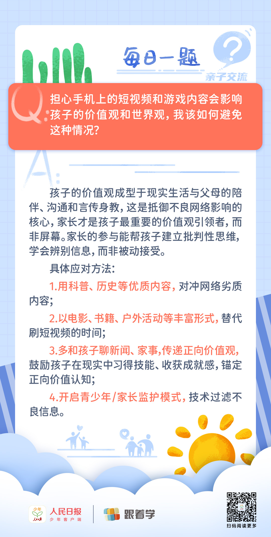 每日一题丨家长该如何避免手机上的内容影响孩子的价值观和世界观?